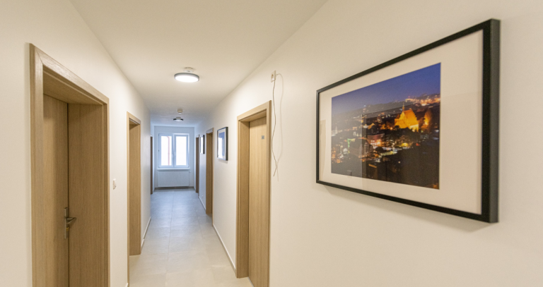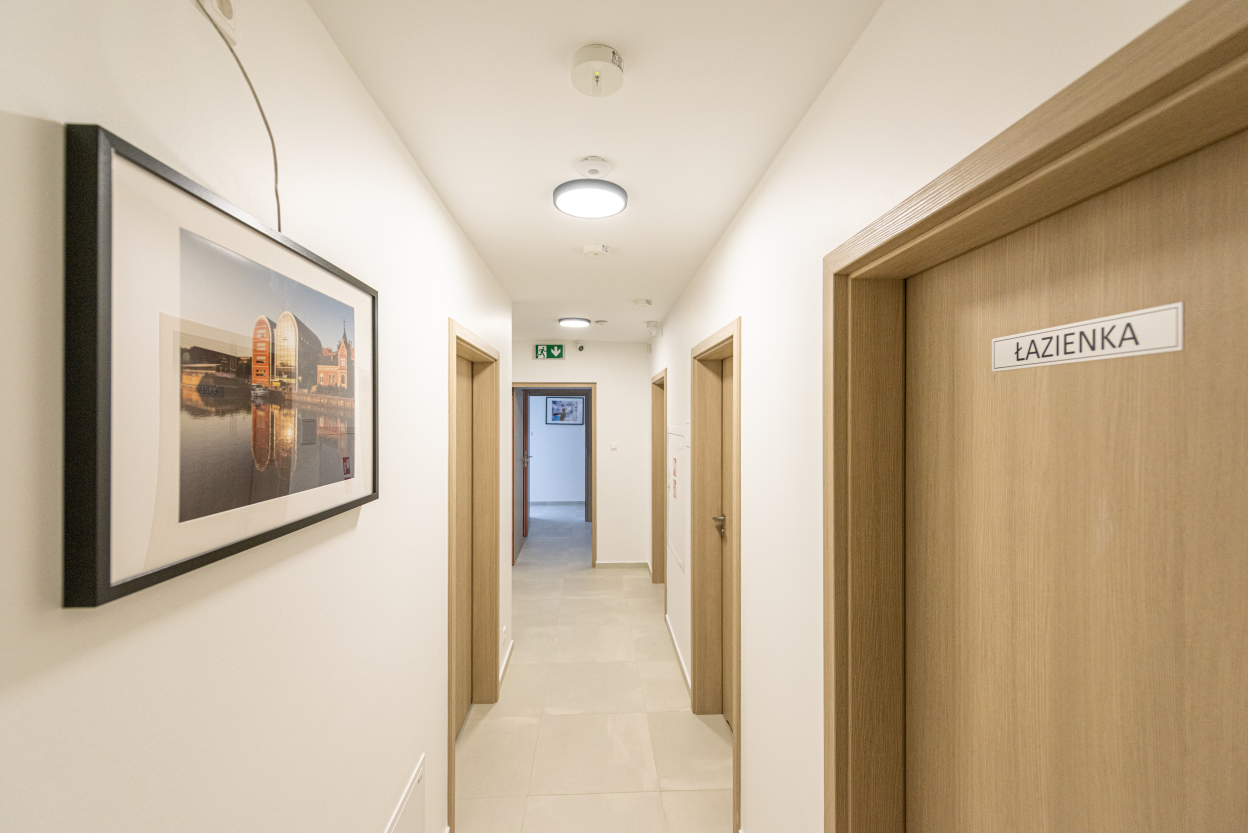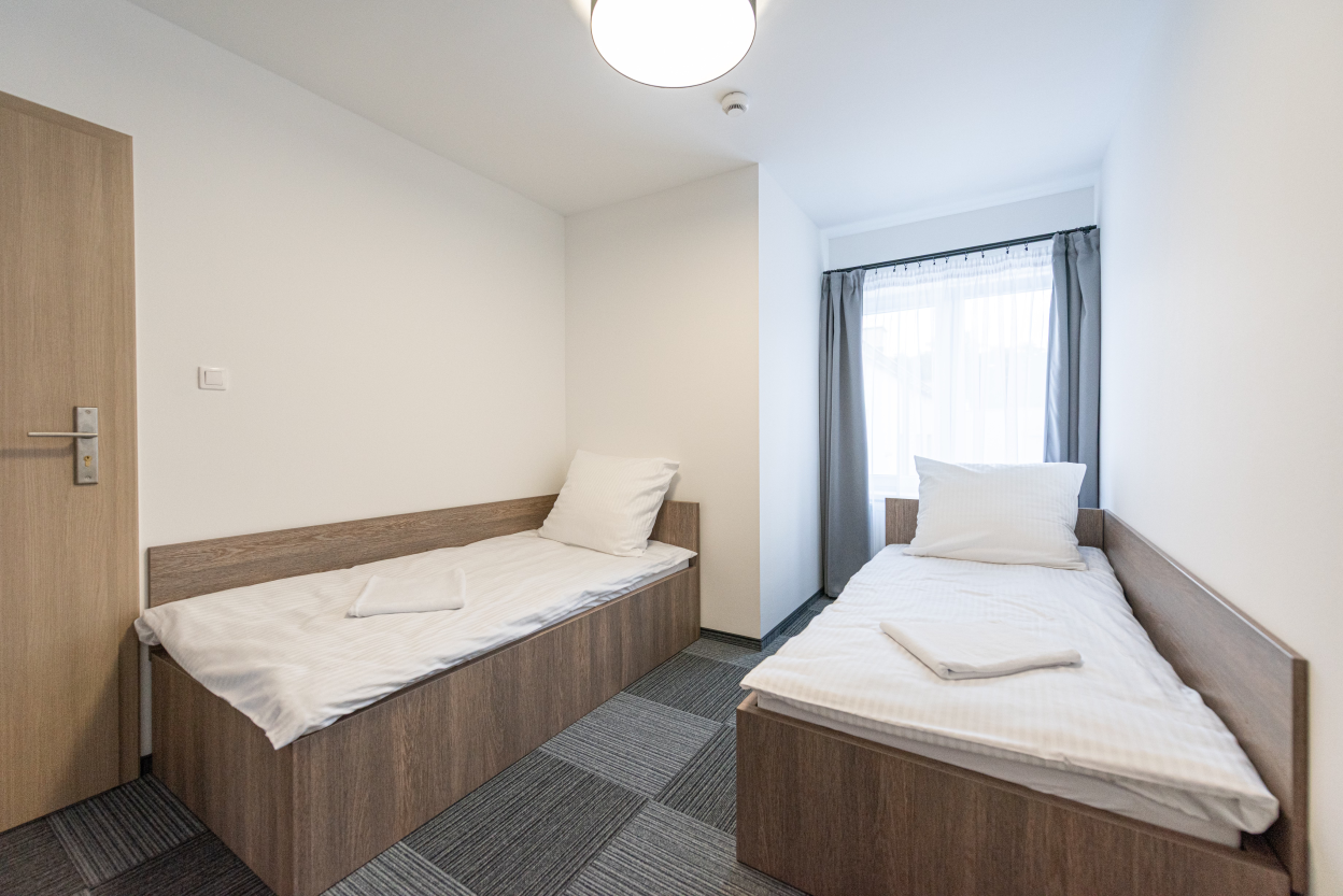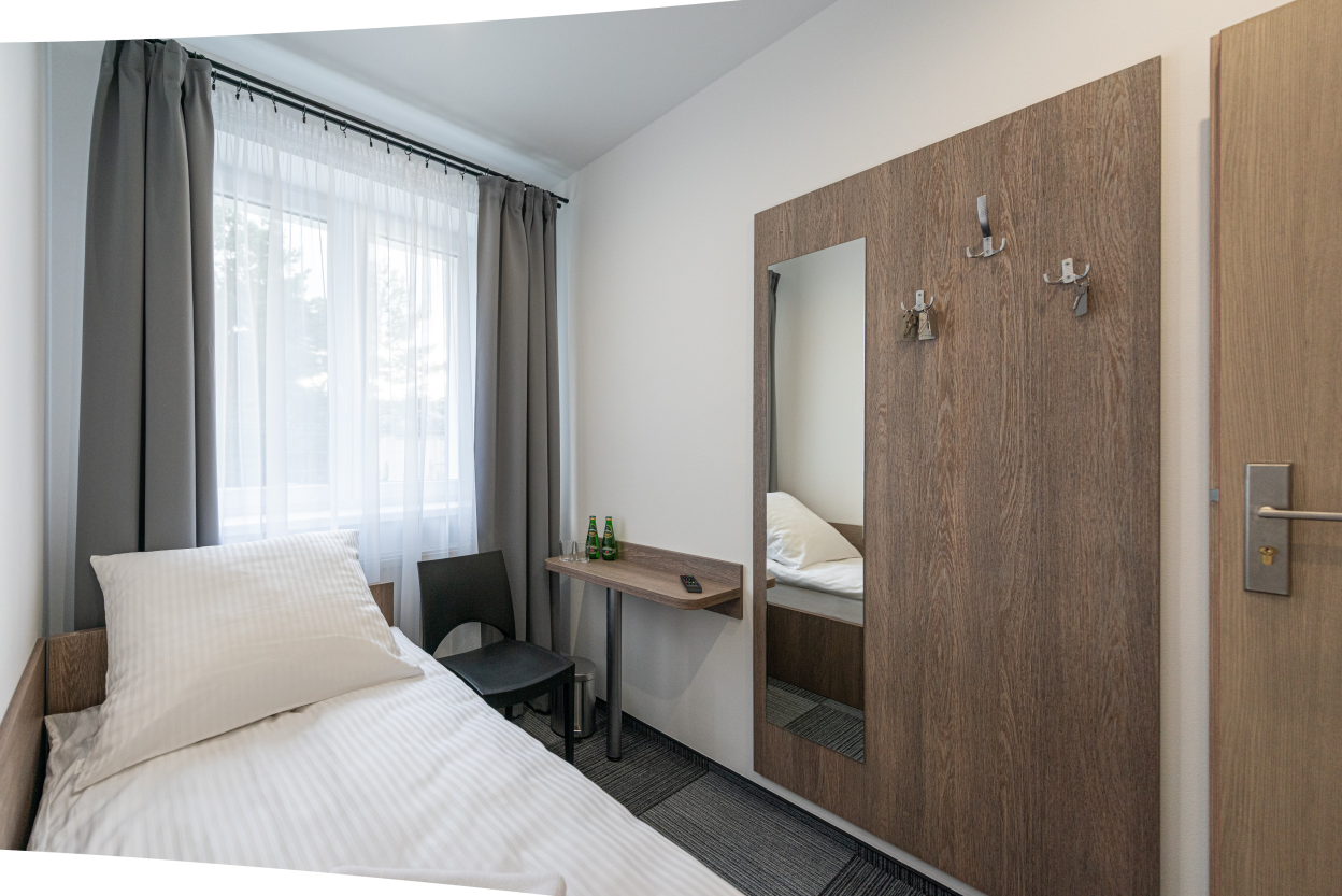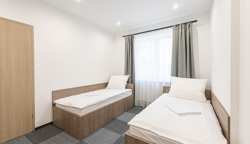 Oferujemy funkcjonalne pokoje jedno- i dwuosobowe, dostępne z prywatną lub wspólną łazienką. Każdy pokój jest zaprojektowany tak, aby zapewnić spokojny pobyt niezależnie od długości wizyty. Do dyspozycji jest także pokój przystosowany dla osób z niepełnosprawnościami.
