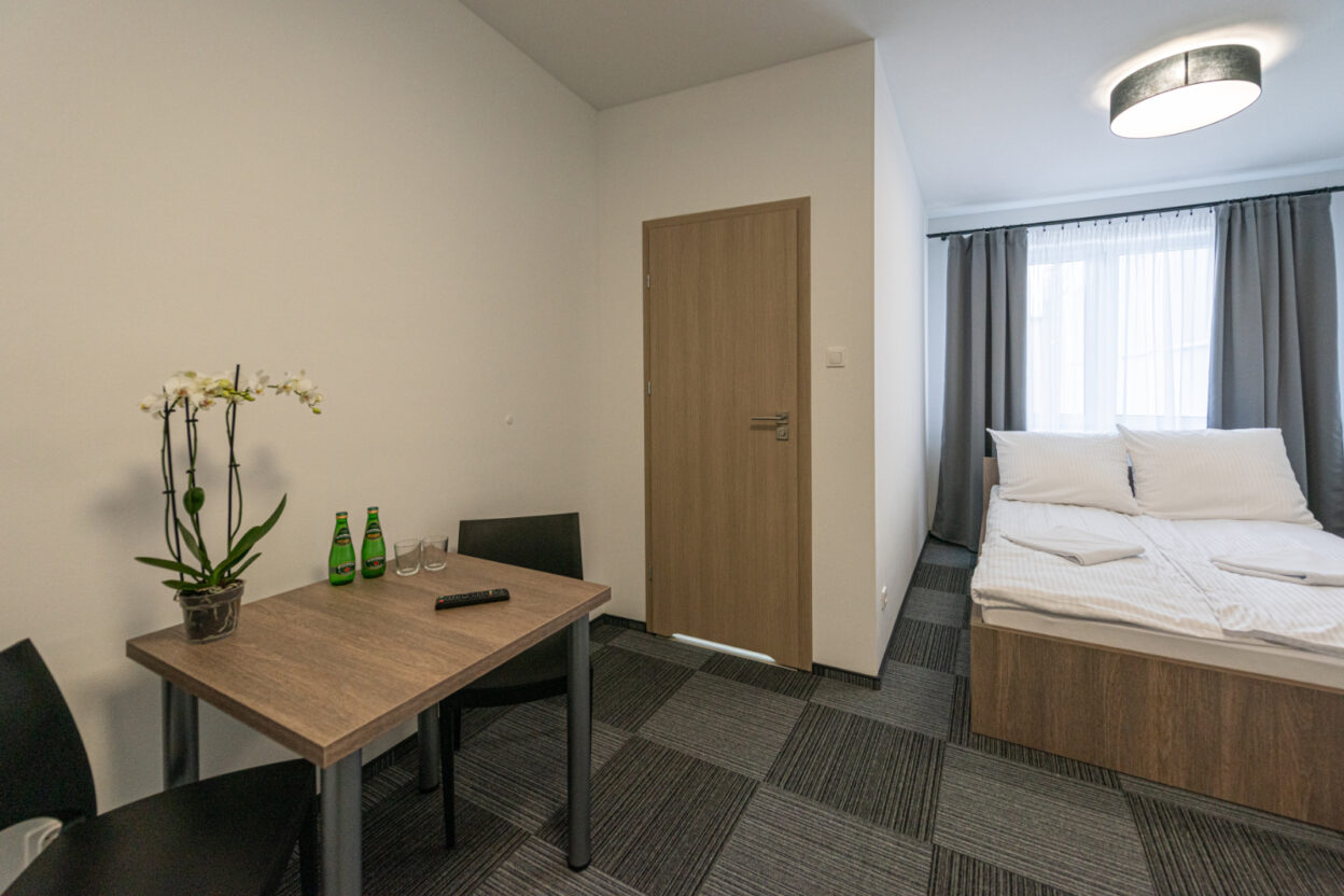 Pokój o podwyższonym standardzie dla jednej lub dwóch osób z prywatną łazienką na wyłączność, wyposażoną w umywalkę, prysznic oraz toaletę. W pokoju znajduje się łóżko typu King Size o wymiarach 180×200 cm. Nowoczesne wnętrze, czysta oraz zadbana przestrzeń pozwolą Państwu poczuć się doskonale i umilą wypoczynek w naszym Hostelu w Bydgoszczy.